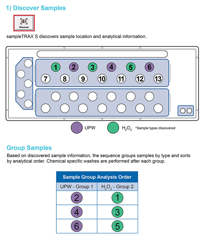 At the touch of a button, sampleTRAX SF automatically identifies samples, imports the required analytical protocol(s), performs each analysis, reports results, and tracks sample status throughout the entire process.